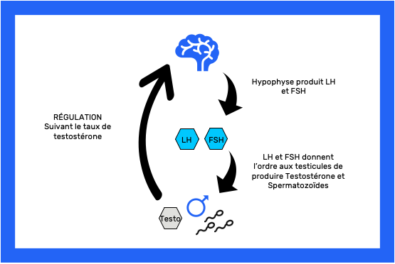 S'il manque de la testostérone et des spermatozoïdes alors l'hypophyse va produire de la LH et de la FSH sinon elle cesse la production.